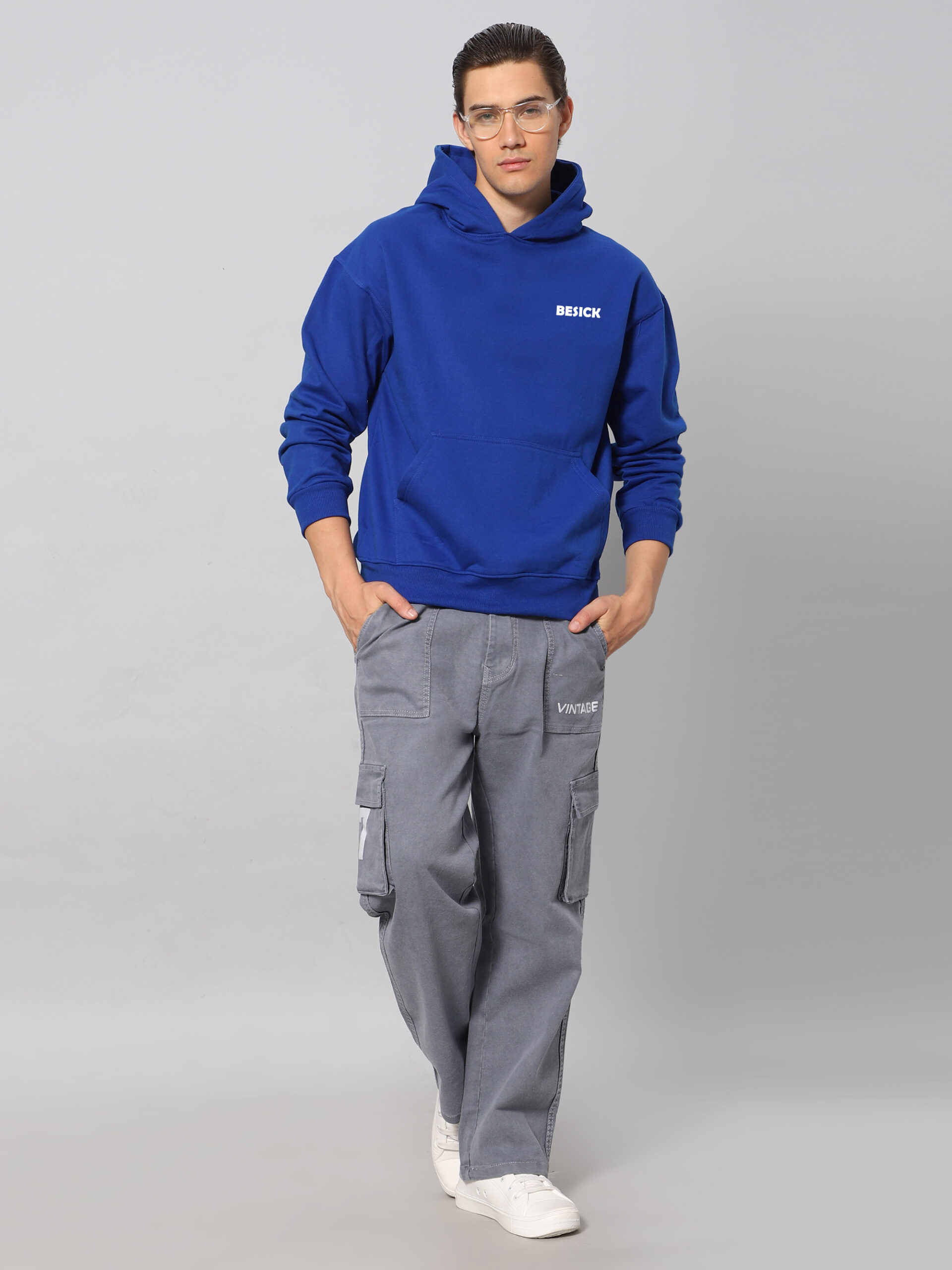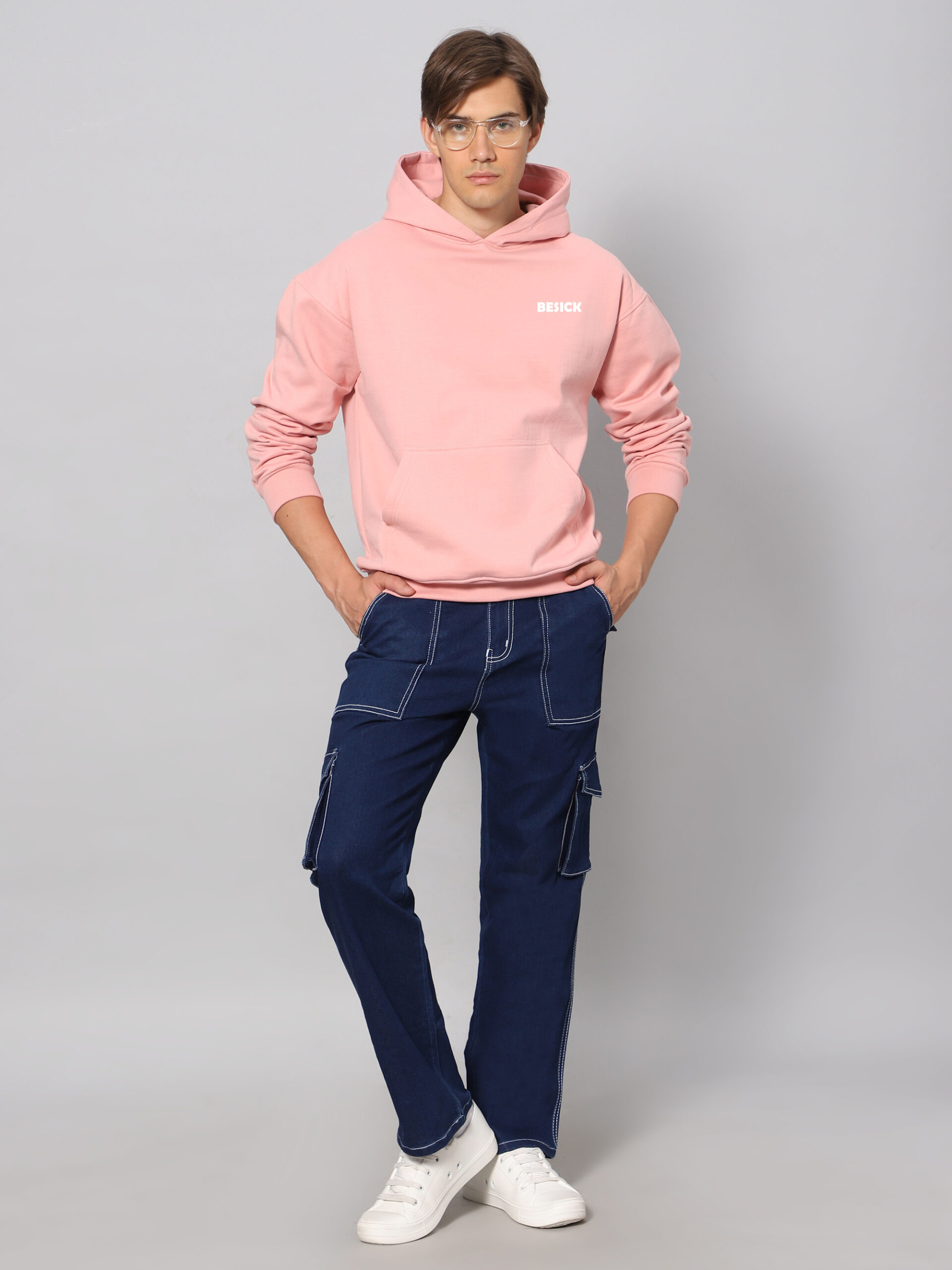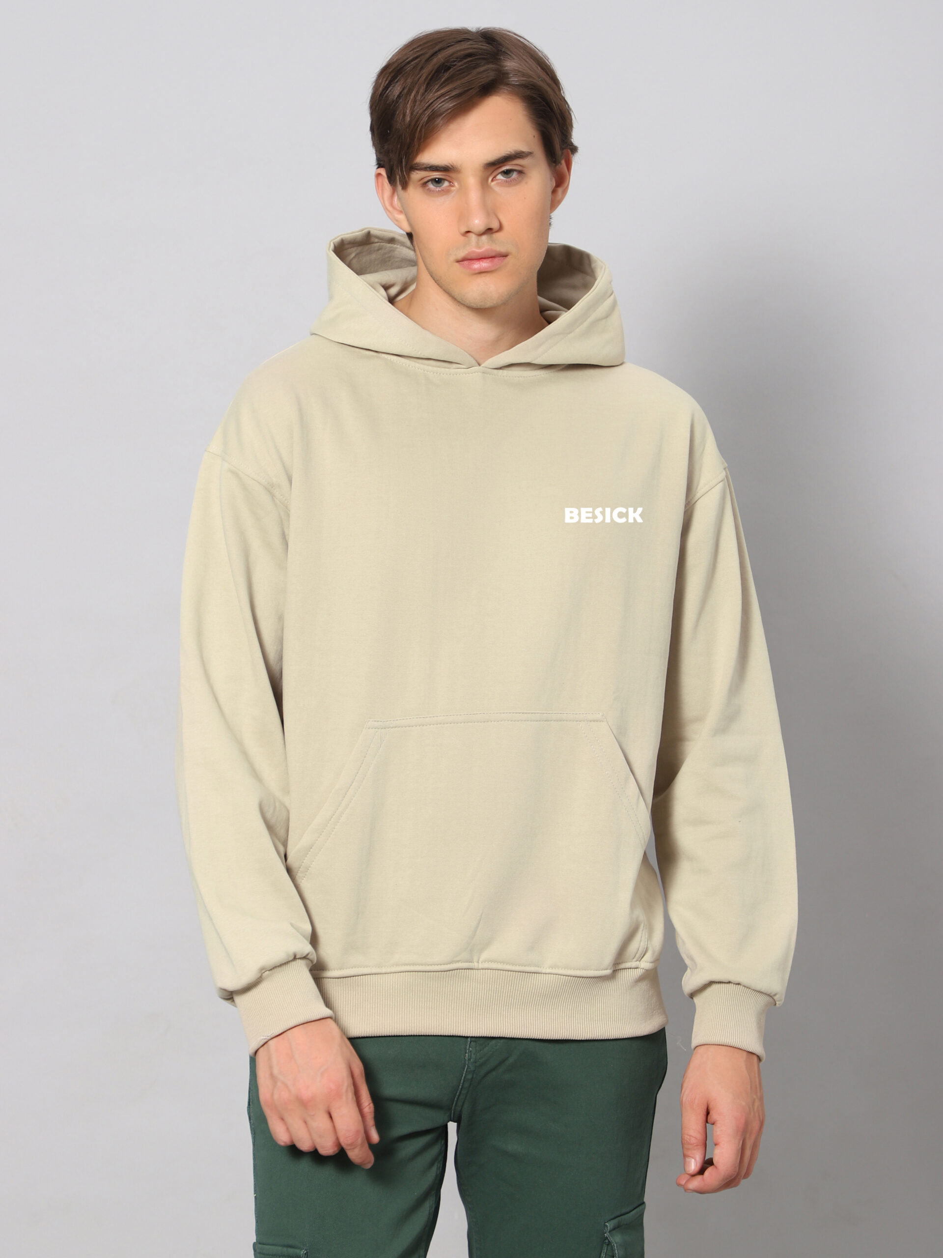 Besick Hoodie in a fabric made from a cotton blend with soft brushed inside. Relaxed fit with a lined, double hood , dropped shoulders and long sleeves. Kangaroo pocket and ribbing at the cuffs and hem.