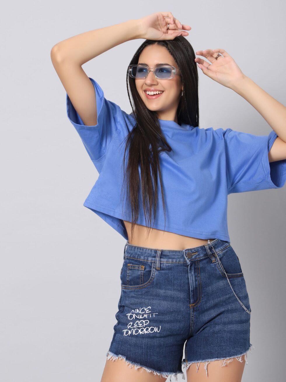 SKU: Ocean Blue Cropped Oversized T-shirt - Women Categories: , , , ,