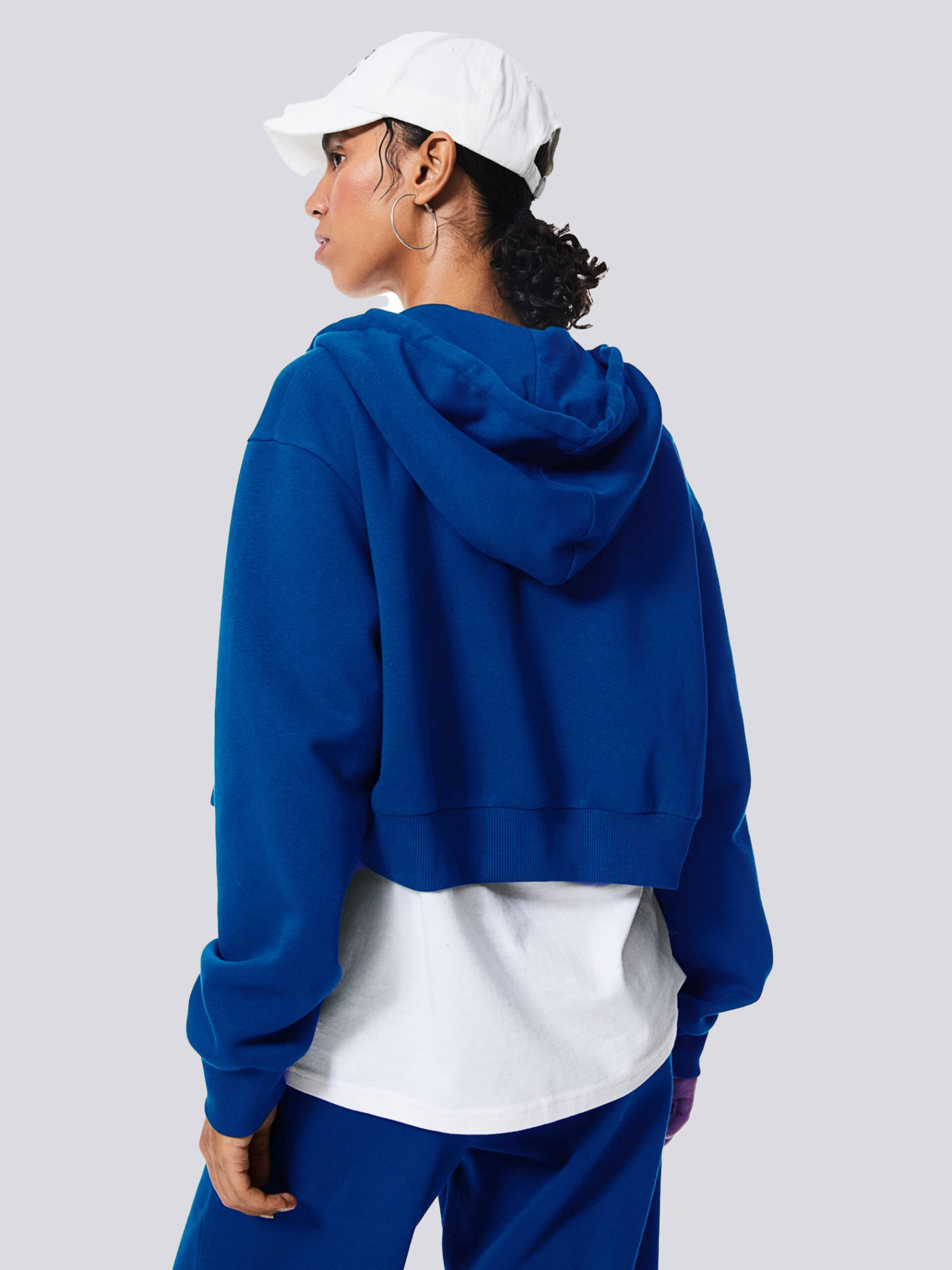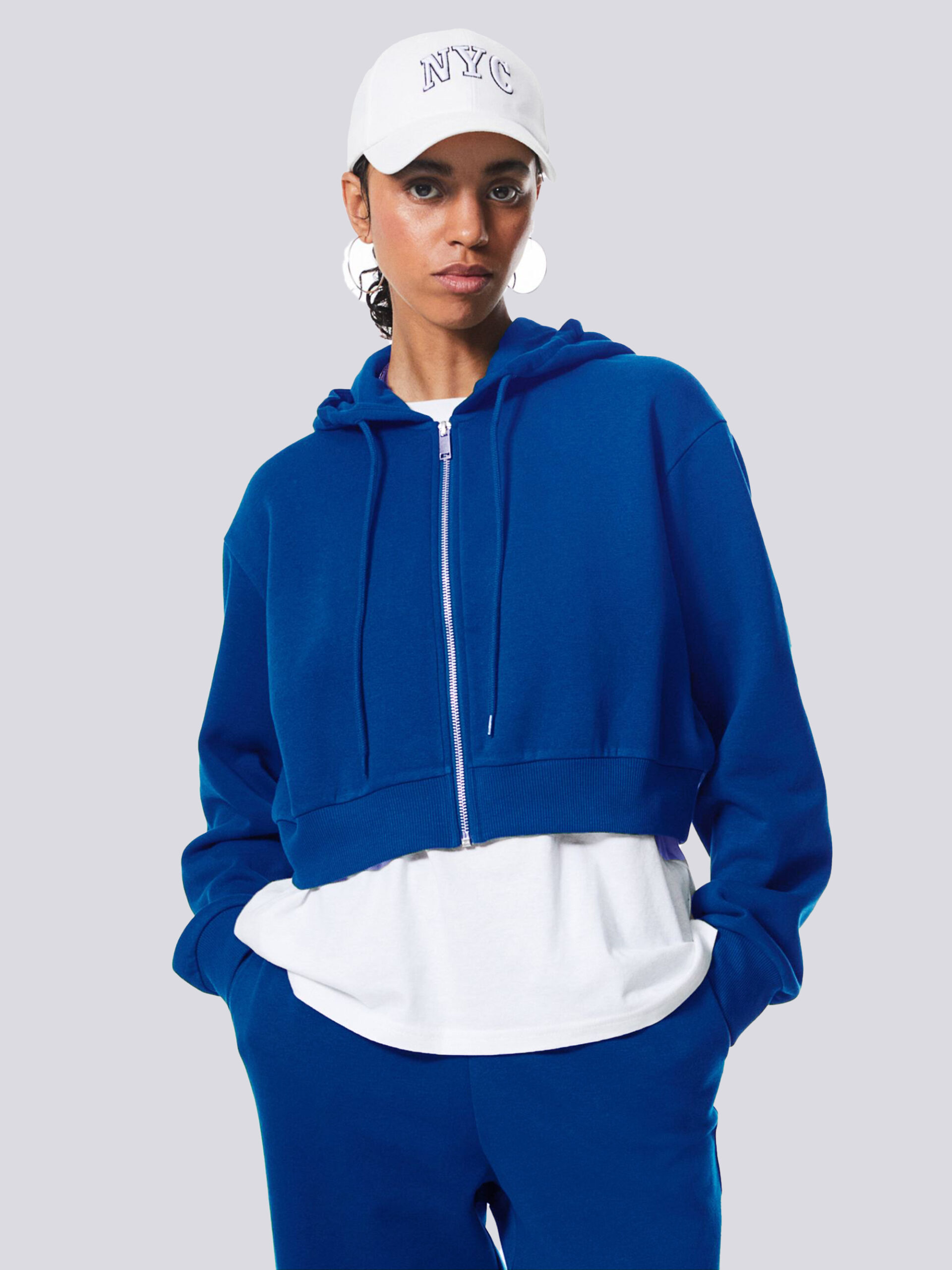 Zip-up Hoodie in Heavy 340GSM made from a cotton blend fleece fabric. Relaxed fit with a hood, a zip down the front, diagonal, welt side pockets and ribbing at the cuffs and hem. Soft brushed inside.
